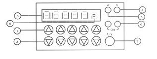 2、各下降鍵分別對(duì)應(yīng)顯示數(shù)值各位數(shù)字,并可對(duì)相應(yīng)數(shù)字進(jìn)行9-0-9的操作。