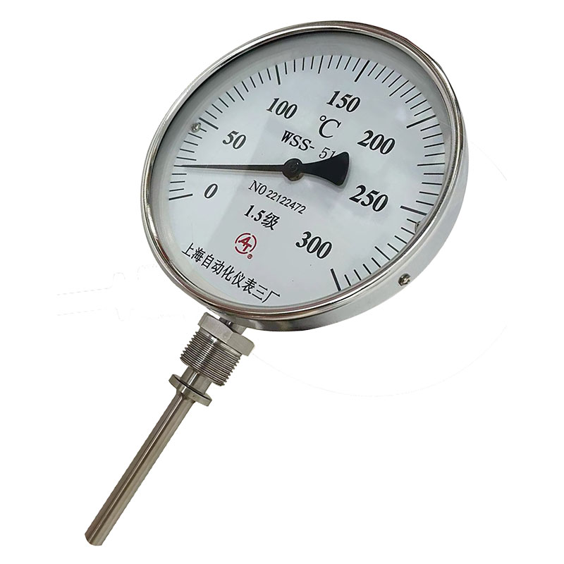 WSS-511雙金屬溫度計是用于測量中,低溫的現(xiàn)場檢測儀表,可用來直接測量液化和氣體的溫度。與玻璃水銀溫度計相比具有無***害、易讀數(shù)、牢固耐用等優(yōu)點。