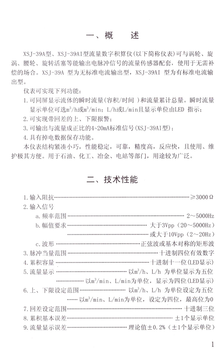 XSJ-39A/XSJ-39AI流量數(shù)字積算儀使用說明書