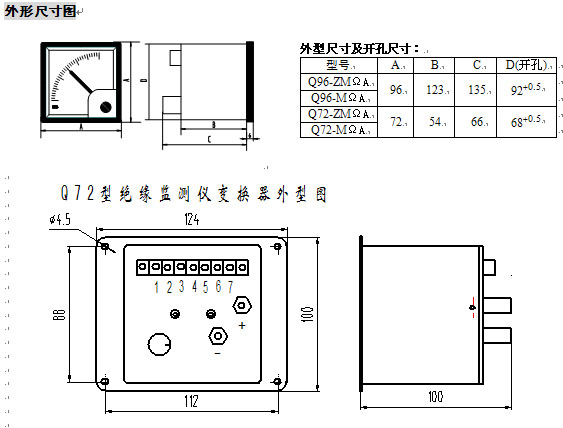 Q96D-MΩA | 96×96×140 | 92+0.5×92+0.5 | 1.1 |