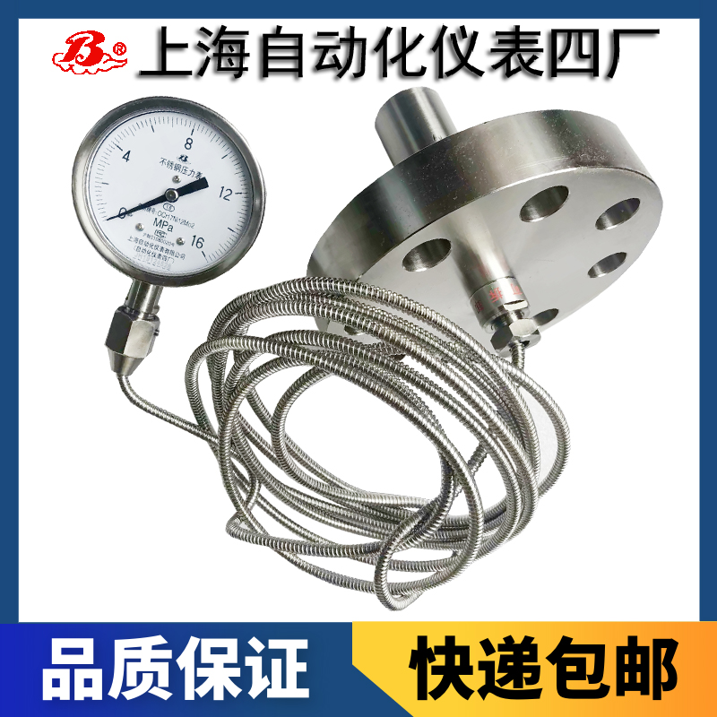 4.充液隔膜式壓力表的使用性能,從其工作原理可知:其耐介質(zhì)腐蝕性均取決于膜片及法蘭材料;其余性能取決于與之相配的通用型儀表。故用于有強(qiáng)烈機(jī)械振動(dòng)的場(chǎng)合,要求配用耐抗振壓力儀表。