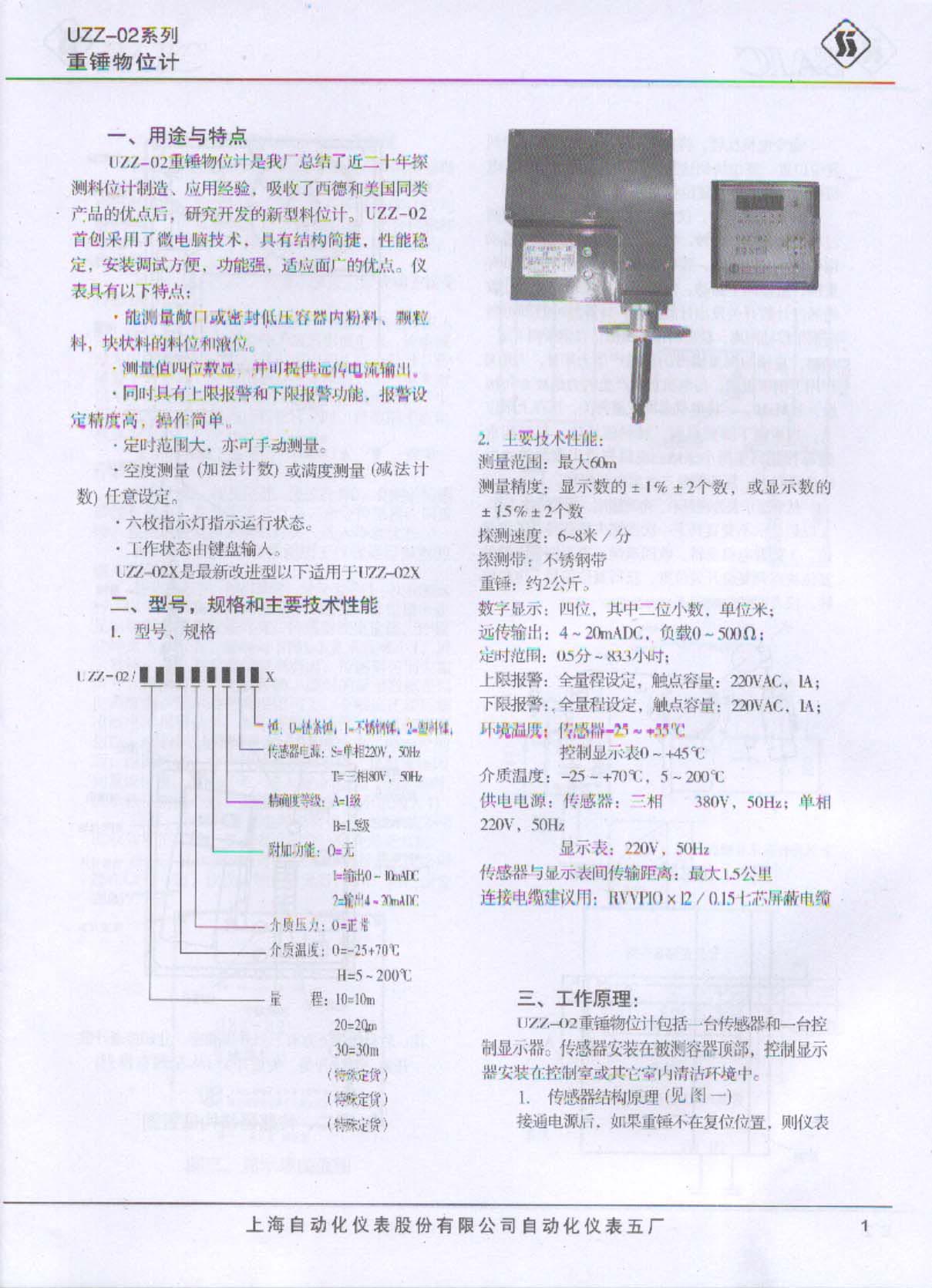 UZZ-02系列重錘物位計(jì)說明書上海自動化儀表五廠